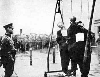 As usual the camera was suspended from a strap around his neck, the coat was slightly parted, and his hands under the coat directed the lens to the scaffold. The condemned young man, was brought in a cart. He still did not realise what was going to happen to him. He noticed at first a large crowd, and then the dangling noose. Now he knew. Without uttering a sound he ascended the scaffold, his head down.