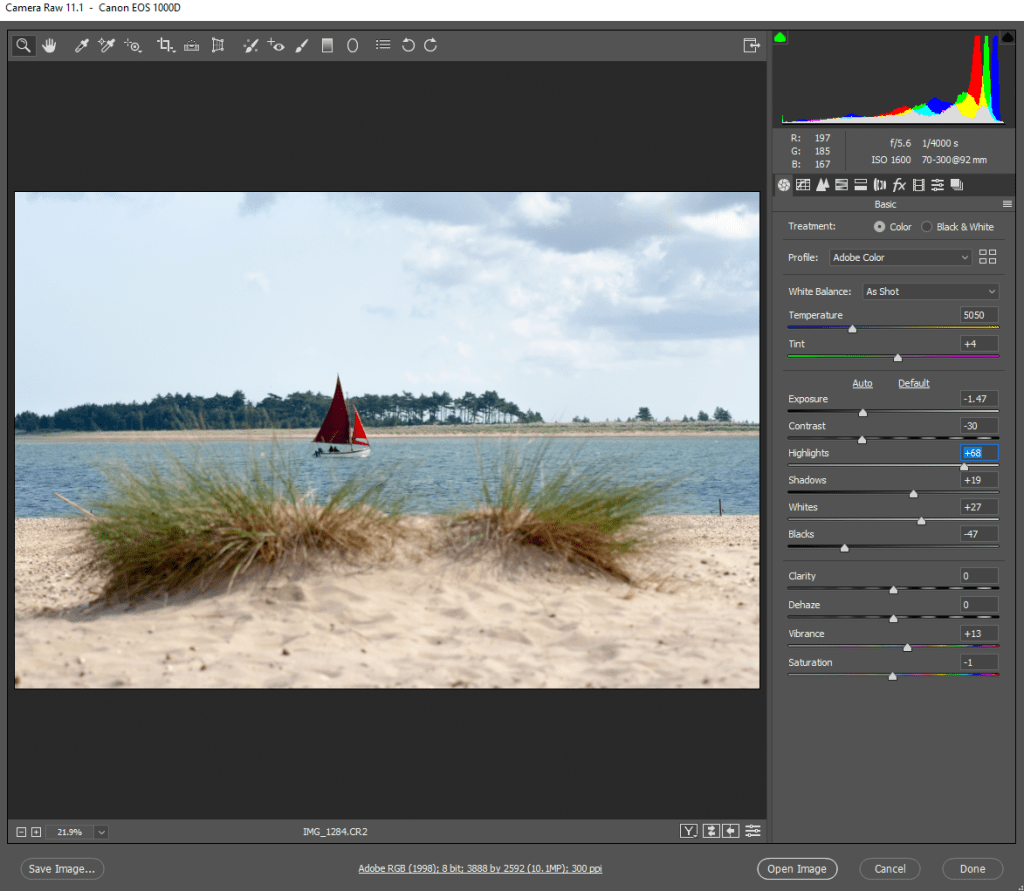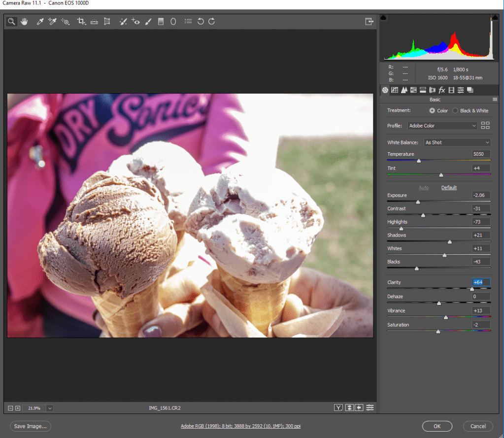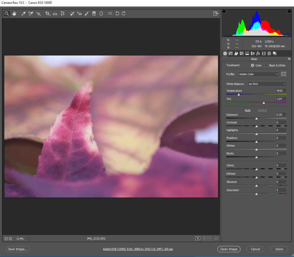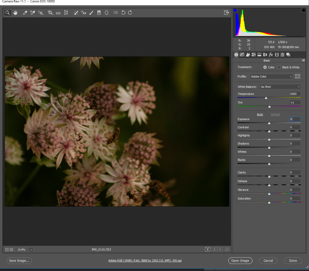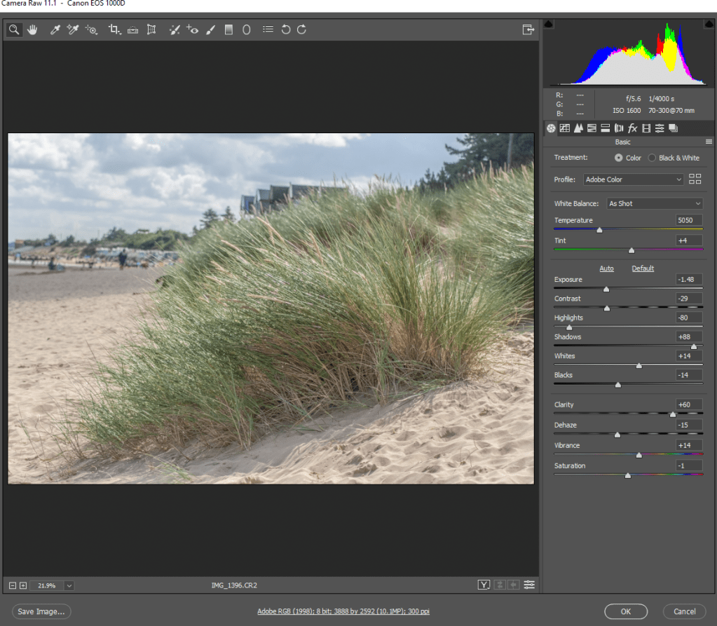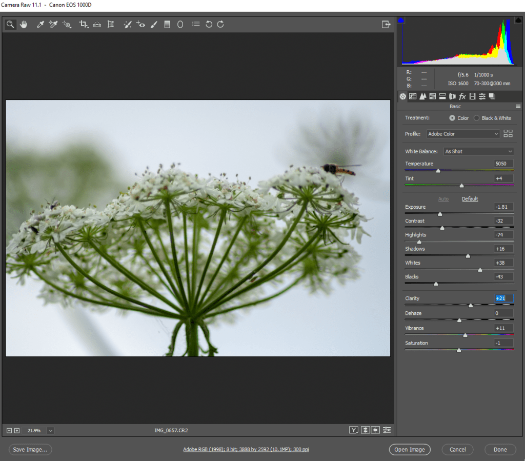 The use of accurate white balance was also required to allow myself room to adjust the colours within the images.