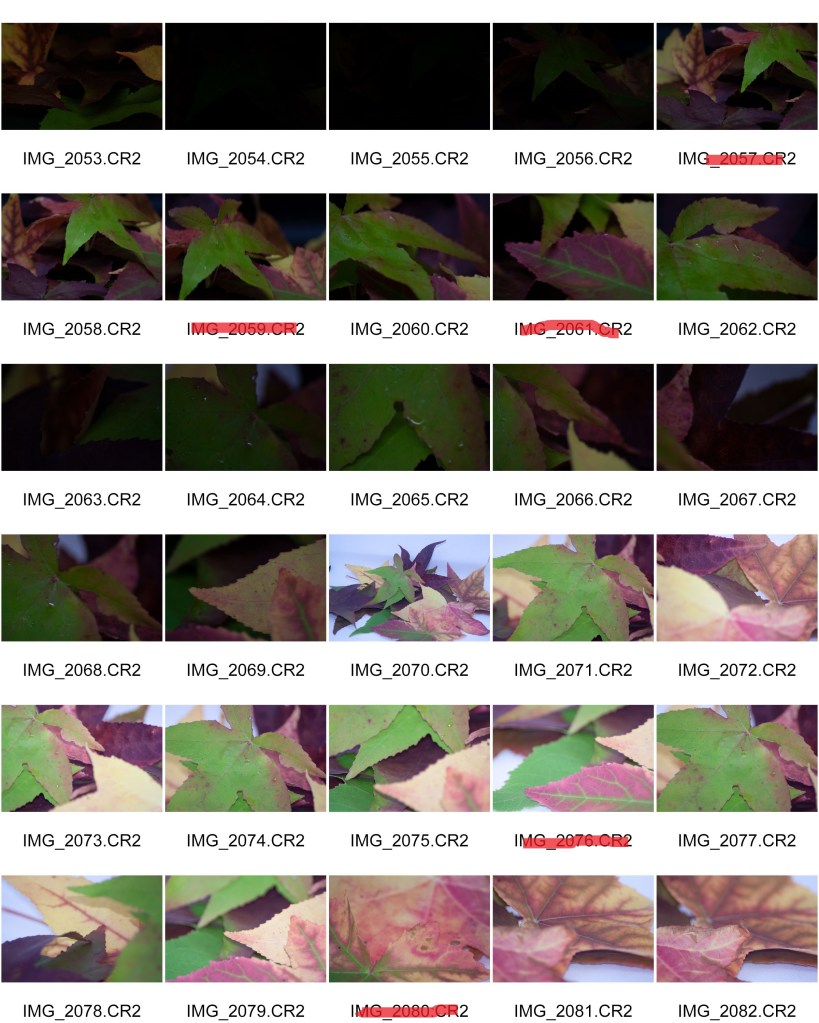 Although all images needed editing as they were shot in RAW format, these images need improvement due to either incorrect camera settings, movement of the camera (no tripod used), or the image is not set up correctly.